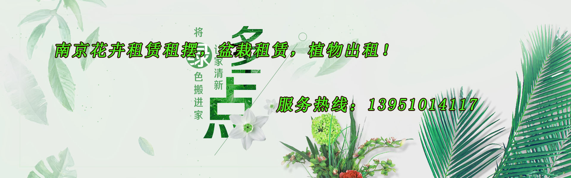 南京市江寧區(qū)綠地花卉園藝中心是南京專(zhuān)業(yè)的室內(nèi)綠植租出、花卉租賃、鮮花租擺公司,致力于室內(nèi)植物租賃、鮮花盆景出租、綠化養(yǎng)護(hù)、室內(nèi)租擺花卉、花卉植物租賃、花木租擺、盆栽養(yǎng)護(hù)及辦公室花卉布置服務(wù)。